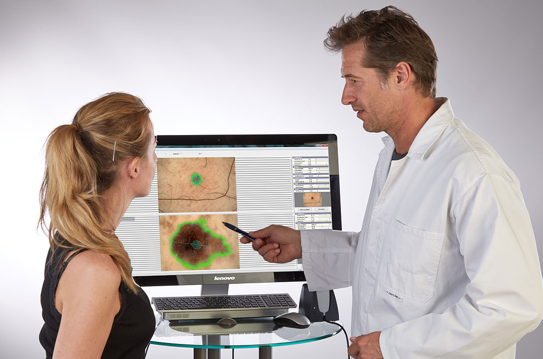 And this is how it works: the skin area is captured by a special camera, and the software evaluates the image following the ABCD rule. The software compares the birthmark to similar cases and classifies it. What is so special about it: DermoGenius “memorises” suspicious birthmarks and precisely depicts any change in the next examination.