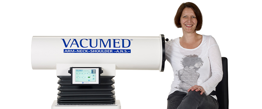The intermittent vacuum therapy (IVT) with the Vacumed device. The patient puts both legs in a tube, the blood is sucked into the legs, and then, on Earth, the heart has to pump strongly to get the blood out of the legs again. After six weeks (two half-hour treatments free of pain), i.e. twelve IVT lying “sessions”, the vessels in the legs are now better supplied with blood and oxygen, walking is easier again and doesn’t cause pain, and the risk of strokes decreases on a sustained basis – of course only if the patients stop smoking.