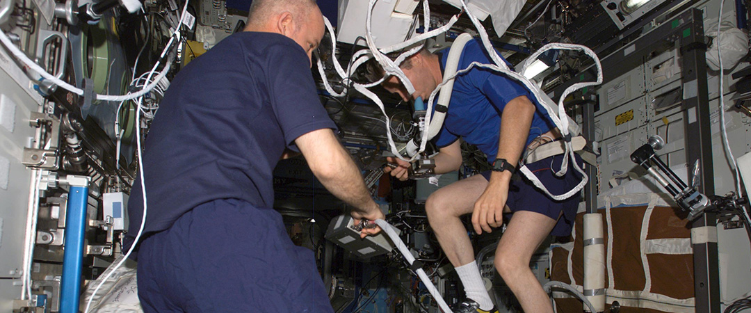 Even from outside, the body can be forced to pump more blood into the legs. With sort of a low-pressure trousers, the Lower Body Negative Pressure Device (LBNP). Since the sixties, research has been done in Germany on this technology, initially at the Institute for Space Medicine of the German Aerospace Center (DLR) in Cologne. It has been deployed for the first time on the spacelab mission NEUROLAB (1998) and thereafter has been further developed for use on the ISS.