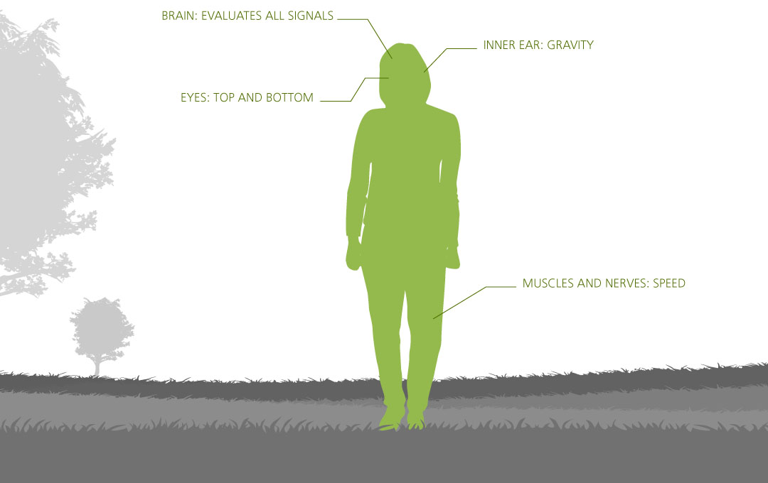 Humans have two inner ears, one of which plays the lead, similar to sinistrality or dexterity. Hence, everybody is either down at the right or at the left as far as balance is concerned. This is also a research result from space flight.