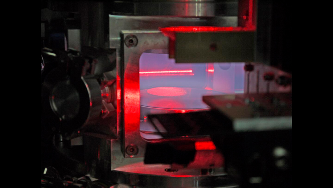 Matter occurs in four states: solid (well-ordered), liquid (less ordered), gaseous (disordered) and plasma (highly disordered). A plasma is an ionised gas. A plasma crystal is even more extraordinary. Here, small solid particles measuring approx. one thousandth of a millimetre are added to the plasma. Thus, the plasma can crystallise into a “complex plasma”. The particles form grids with relatively large spaces (approx. 1/10 of a millimetre) in which the plasma is sort of “trapped” – the chaotic matter has been tamed and can now be explored under a microscope. These structures are even visible to the naked eye. What usually happens at terrific speed on the atomic level, takes place considerably enlarged and in slow motion through “taming”. This discovery was made in 1994.