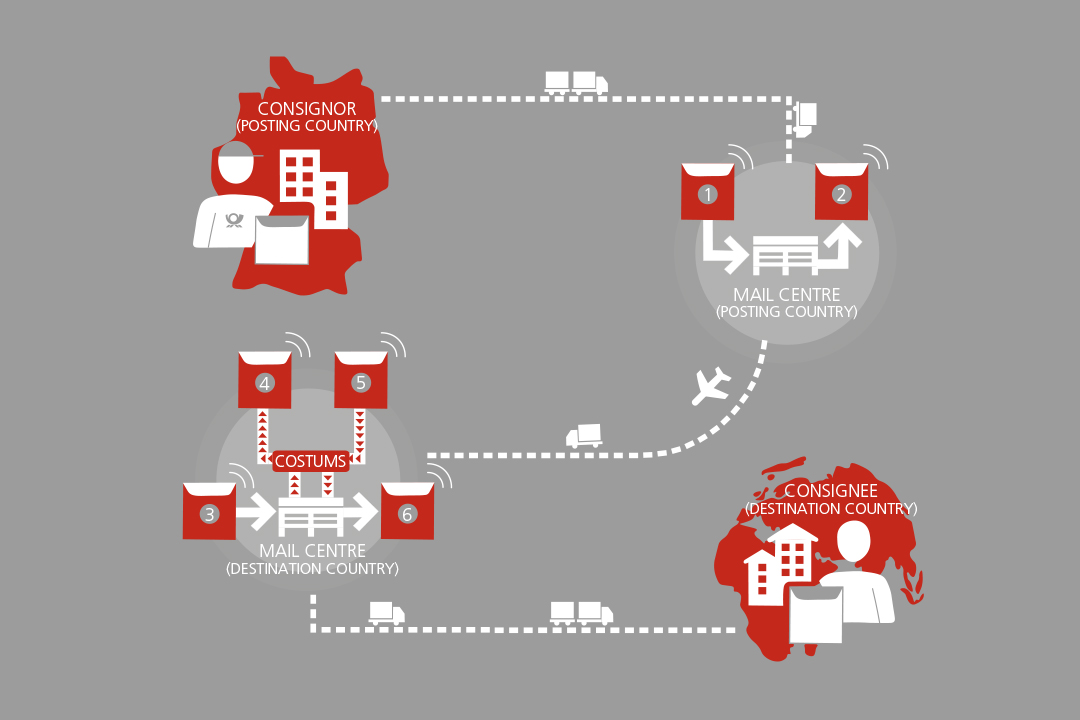 RFID tracking of consignments of goods abroad has been possible since 2015: with adhesive radio tags. This service of Deutsche Post named “country proof“ enables customers to track the current location of the parcel – tracking is made contract-free by radio and not via barcode as in the case of normal parcels needing elaborate manual scanning.
