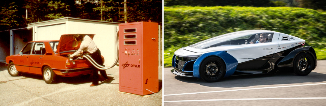 DLR is setting the pace in hydrogen research: Europe’s first hydrogen vehicle originated from DLR in 1978. In 2020, DLR presented the concept of the hydrogen vehicle “Safe Light Regional Vehicle“ (SLRV), featuring a weight of 450 kilogrammes with production cost of just about 15,000 euros in series production.