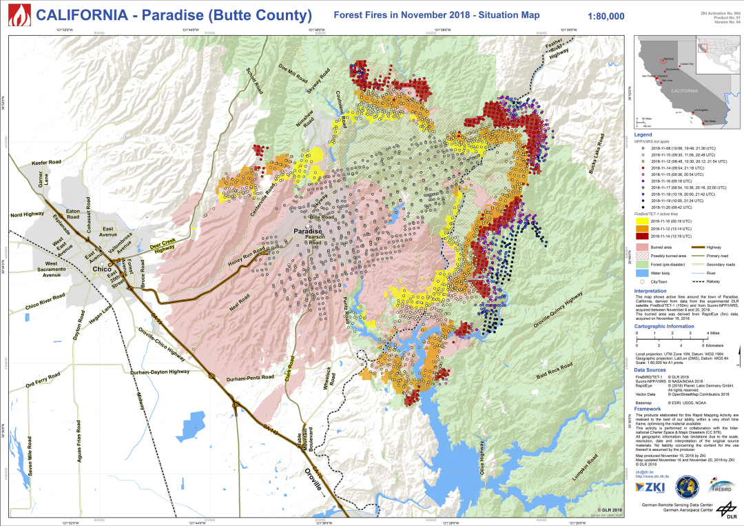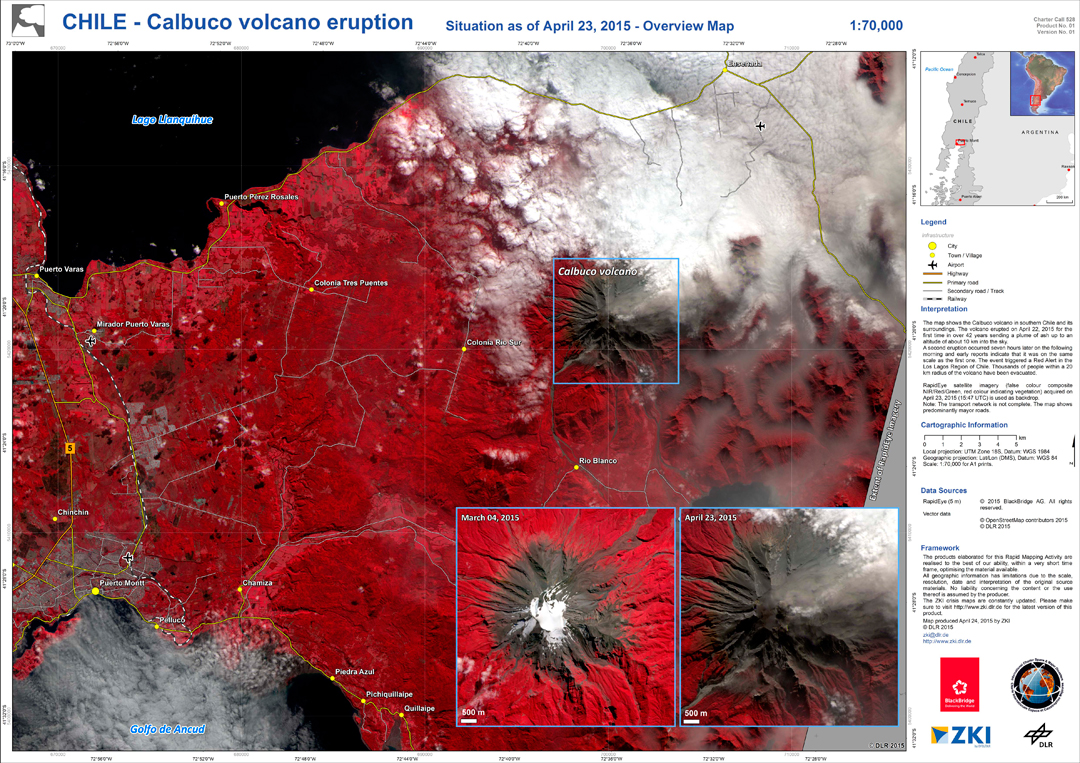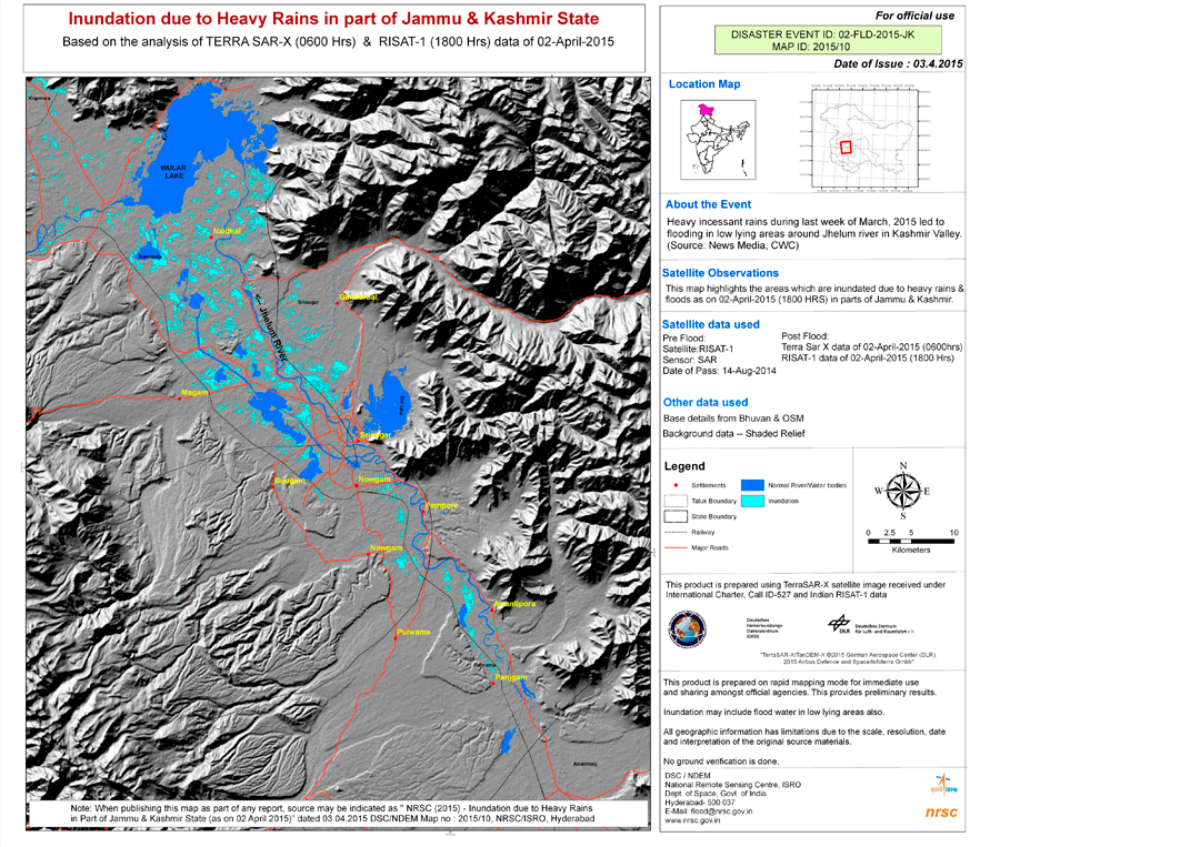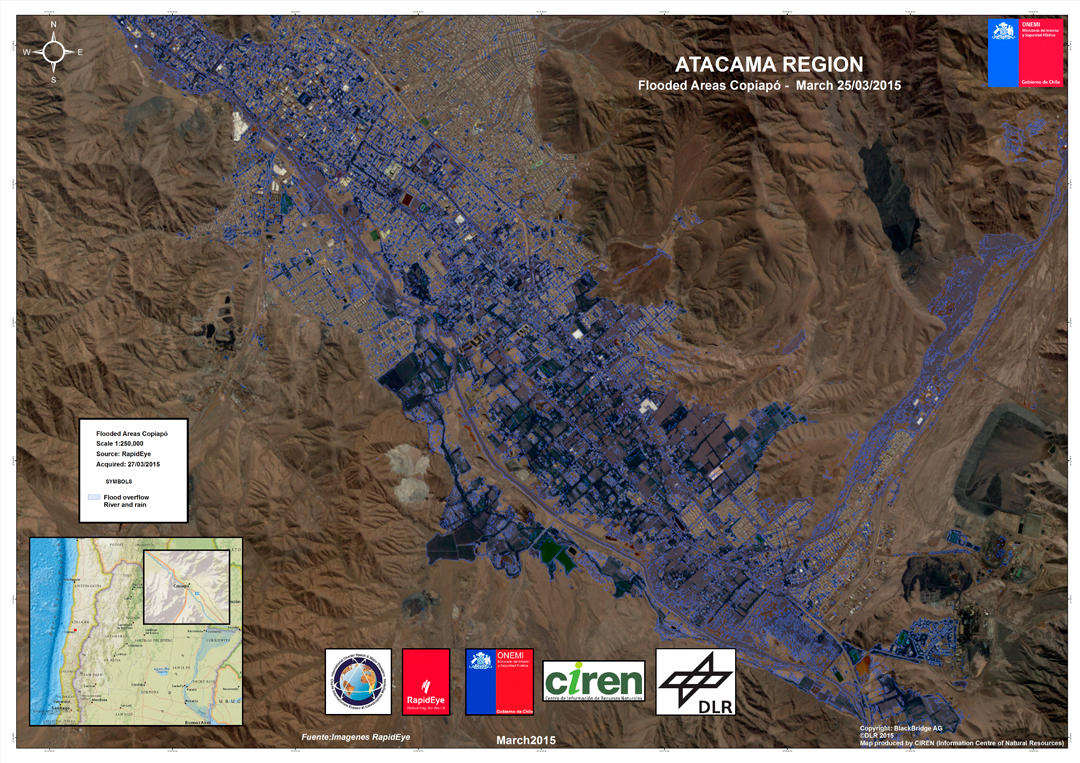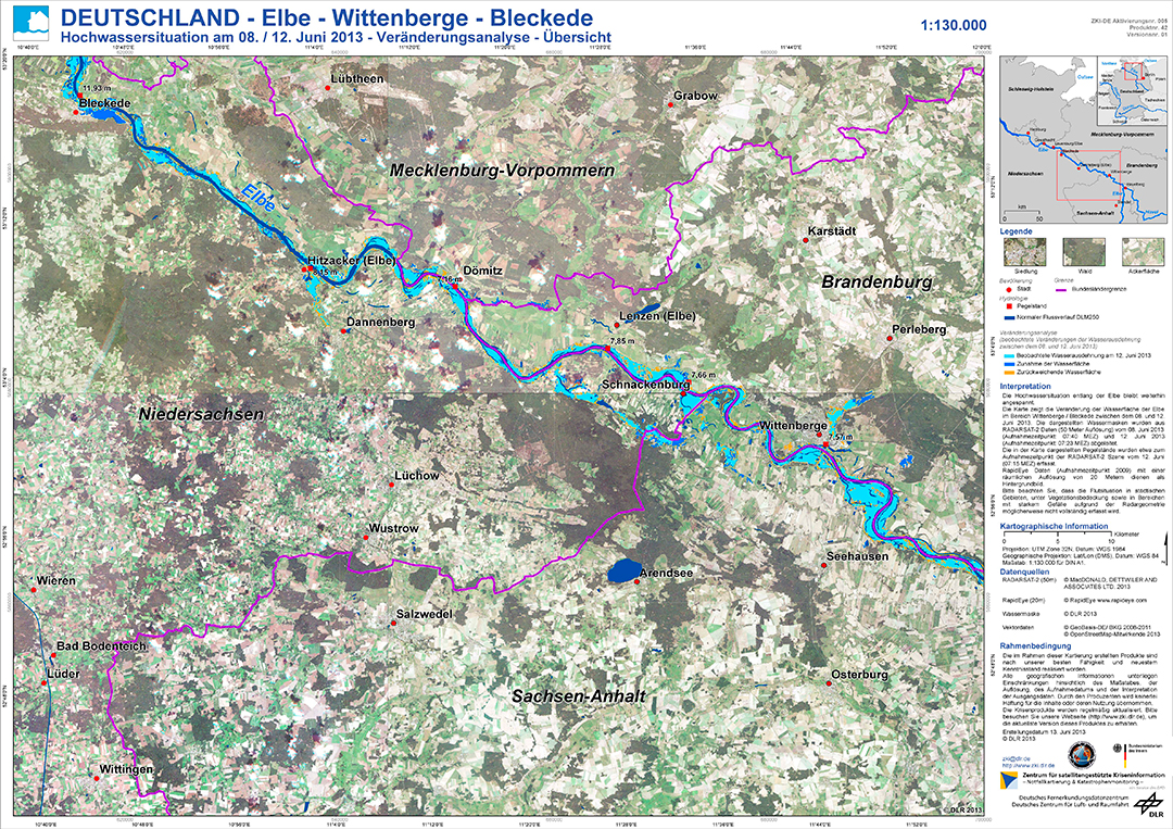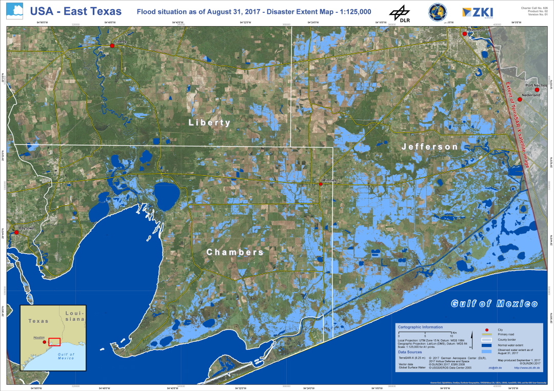 Within the framework of its charter membership, the DLR provides data of the German radar satellites TerraSAR-X and TanDEM-X as well as optical RapidEye images for disaster management.