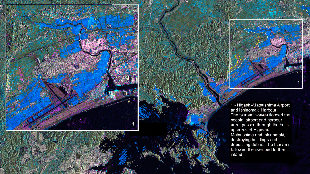 Weather satellites such as the European Meteosats, radar satellites such as the German TerraSAR-X and TanDEM-X or the European Sentinel-1 and optical satellites such as Sentinel-2 are scanning the Earth around the clock. Meteorologists and disaster prevention personnel evaluate the data. Changes of the Earth’s surface might signalise forthcoming disasters. Before and after comparisons elucidate the extent of destruction in next to no time. This in turn is the basis for disaster relief being as efficient as possible.