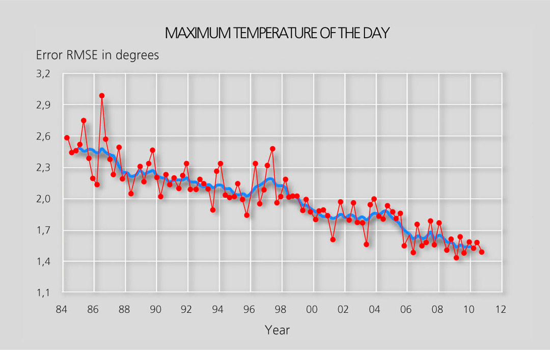 Due to ever decreasing errors and deviations. At the end of 1960, the forecasts for the peak temperature of the next day missed the actual value by 5 degrees once or twice a month. Today that happens at most once or twice a year. On average, today the inaccuracy is plus/minus 1.5 degrees – clearly answering the question of whether we will need a jumper tomorrow or not. So, the forecasts have become ten times more reliable since then.