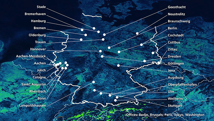 Institutes, testing and operating facilities: At 30 locations in Germany, the DLR unites about 10,000 employees. 1,400 of them are working at the headquarters in Cologne and 1,800 at the largest site, Oberpfaffenhofen. They all form the DLR. Here are some examples: