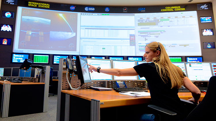 The control rooms of the German Space Operations Center (GSOC) are located at the DLR sites in Oberpfaffenhofen and Cologne. Here, missions are flown and the Columbus laboratory on the International Space Station is operated.