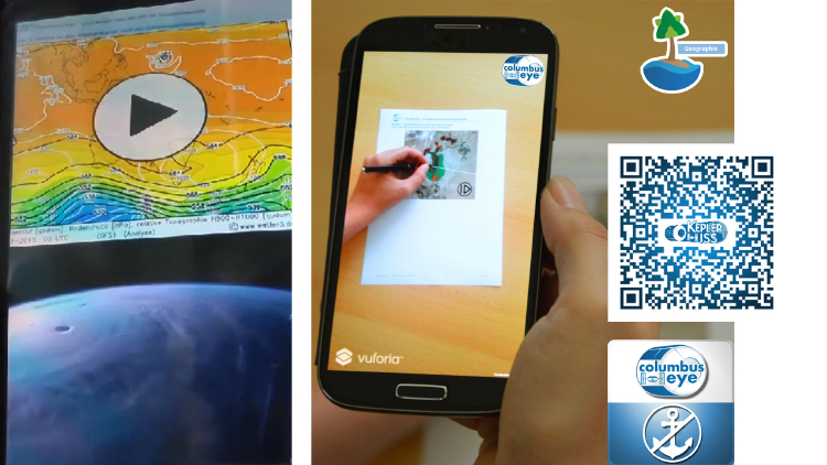 In addition, there is the most up to date world atlas anyone could imagine: as life images from space. Four cameras onboard the ISS, mounted on the outer shell of the European Columbus laboratory, transmit Earth images as livestream to the Earth. Moonrises and sunrises, oceans, land, islands: all that is made visible from an astronaut’s view, and education turns into science. How can one distinguish clouds, water bodies and landscapes on satellite images? How can the height of mountains be determined? Where are rain forests? What do damages caused by mining look like? How can one create an atlas from images? All that increases our consciousness of our Earth’s uniqueness.